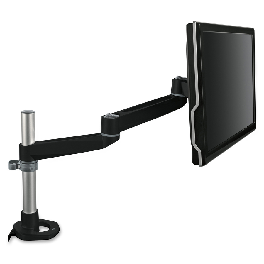 Marketing Information:Adjustable monitor arm allows you to free up space on your desk and set your monitor at the best ergonomic position with several height options. Move the arm up, down, forward and back. Height adjusts up and down through a 7-1/2″ range. Dual-Swivel Monitor Arm can rotate from landscape to portrait. Clamp mount hardware fits desks up to 4-1/4″ thick, and grommet mount hardware fits desks up to 2-1/4″ thick. Weight capacity is 30 lb. Monitor arm is VESA MID-D compliant.