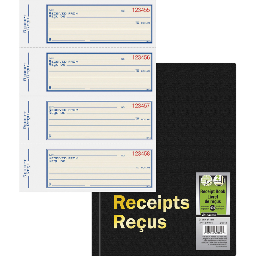 Receipt book with a hardcover features an easy-to-read format to quickly log and file cash payments for income tax purposes. Carbonless duplicates ensure you always have a copy of each receipt. Receipts are consecutively numbered for easy filing and retrieval. Bilingual format allows convenient use by both English and French users.