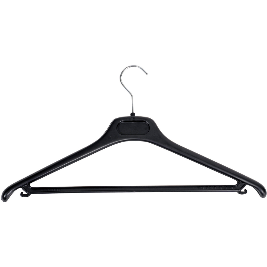 Plastic coat hangers feature an enlarged shape to keep the shoulders of your clothes properly supported. Skirt notches prevent shoulder straps from slipping off the hanger for versatile use. Trousers bar allows you to conveniently hang your pants along with your jacket. Sturdy metal hook resists bending for long-lasting use.