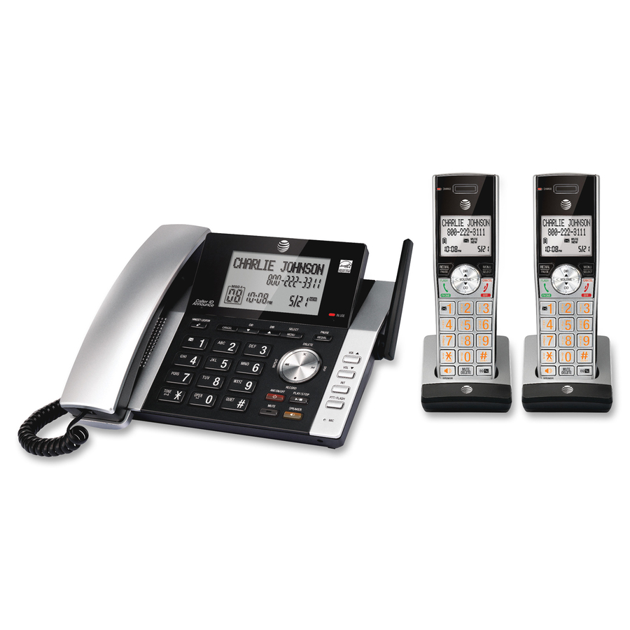 Corded/cordless answering system provides the mobility of a cordless handset and the confidence of always knowing the location of your corded handset. A unique antenna design and advanced noise-filtering technology let you experience exceptional long-range coverage and clarity. Both the handset and base announce the name of the caller so you don’t have to scramble for the handset to see who’s calling. Versatile system doubles as a multiple-handset walkie-talkie to instantly communicate with up to four units at once. HD audio features an easy-to-use equalizer to personalize bass, treble and natural tones for your individual hearing needs. Digital answering machine records up to 22 minutes of incoming messages, outgoing announcements and memos. Answering system also features a backlit base display, big buttons, power-conserving technology, quiet mode, call block, DECT 6.0 digital technology and more.