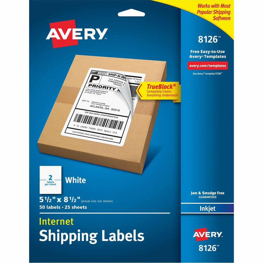 Marketing Information:Avery® White Rectangle Labels with TrueBlock® Technology adhere reliably to envelopes, boxes, bottles, pouches and more, while completely covering everything underneath! These white 8½” x 5½” labels are an excellent choice for large shipping boxes, jar labels, product labels and more!
