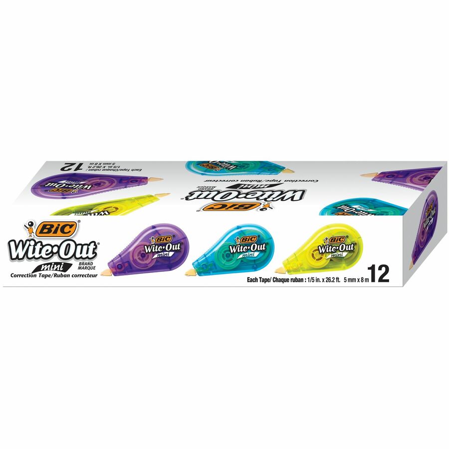 Marketing Information:Make fast, easy and precise corrections on even the toughest errors with BIC Wite-Out Brand Mini Correction Tape. This BIC correction tape comes in a brightly coloured tape dispenser that is compact enough to fit in any bag. Additionally, this white correction tape also requires no dry time and won’t bleed or drip, so you can instantly write or type your corrections over it. The convenient size allows hands, both small and large, to make quick and accurate corrections. One pack contains 12 tape dispensers, each containing 4.9 meters of white correction tape. If you’re looking for reliable office or school supplies for lefties and righties, look no further than this Wite-Out Brand correction tape. From Canada’s #1 Correction Brand*, choose BIC Wite-Out Brand Mini Correction Tape for a high-quality, safe and affordable product you can trust. *Source: BIC calculation based in part on data by Nielsen through its MarketTrack Service for the Correction Products category (brand only) for the 52-week period ending January 4, 2020, for the total Canadian National GB+DR+MM+GM+WC market, according to the Nielsen standard product hierarchy. Copyright 2020, The Nielsen Company