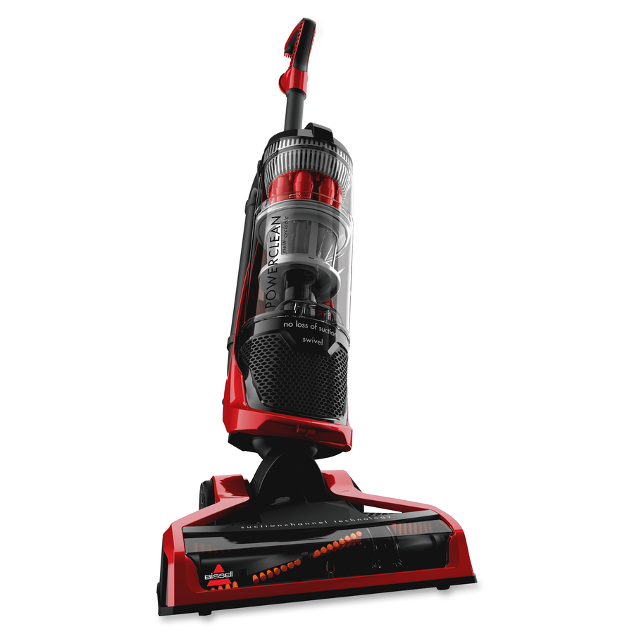 PowerClean upright vacuum with a 12-1/2″ cleaning path features SuctionChannel technology to deliver edge-to-edge suction for efficient cleanings. Swivel steering allows effortless maneuvering around and under furniture in small or large areas. Multi-level filtration helps prevent household allergens from being dispersed back into the air. Brush roll allows you to quickly transition from cleaning carpets to hard floors without any delay. Dirt bin empties from the bottom to easily release the contained dirt into a wastebasket without making a mess. Vacuum also includes a TurboEraser tool, crevice tool and extended-reach hose.