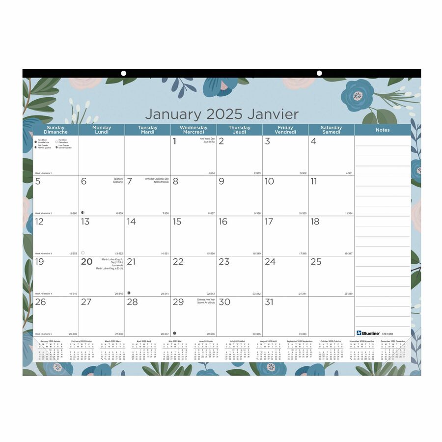 Blueline Azure Monthly Desk Pad Calendar 22″x 17″ , Bilingual