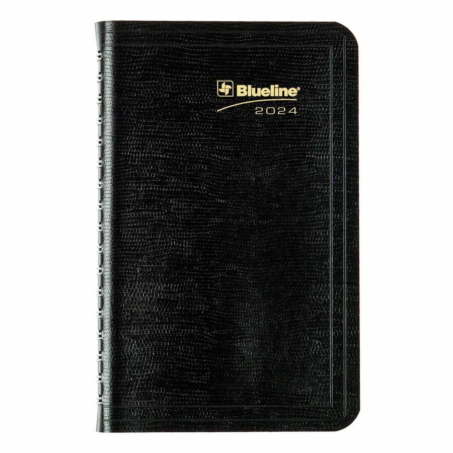 Contains a minimum of 50% post-consumer recycled material. FSC® Certified. Twin wire bound. Soft, lizard-like cover. 1 week per 2-page spread. 7:00 a.m. to 6:00 p.m. in 1 hour intervals. Index sheet with alphabetical, self-adhesive tabs for the telephone and address section. Ruled spaces for Saturday and Sunday. 6″ x 3-1/2″. Bilingual. Black.