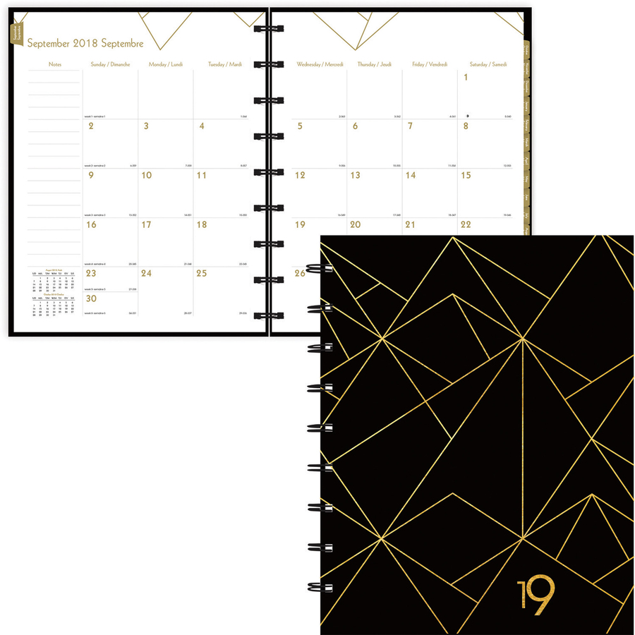 Sleek and sophisticated, this monthly planner offers an efficient planning system that’s both trendy and practical. Heavyweight, MiracleBind sheets can be removed and reinserted as needed. A handy note section provides extra space to keep extra information organized. Laminated monthly tabs help you quickly locate specific sections in the planner. MiracleBind, removable storage pocket keeps your supplies and writing utensils within quick reach. Bilingual format allows easy use by both English and French users. 16-month, metal disc bound planner is perfect for keeping track of your to-do lists, events, monthly goals, notes, contacts, expenses, dates to remember and more.