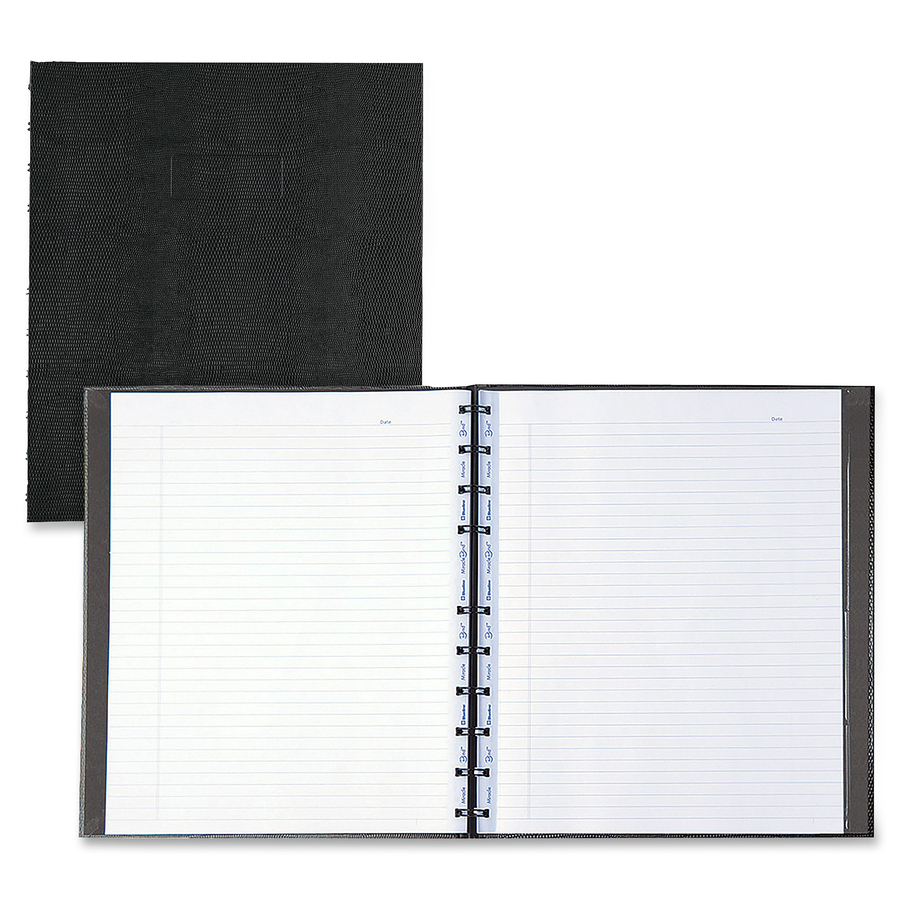 MiracleBind Notebook features a unique coil binding system that allows the easy insertion of its MiracleBind note pages anywhere in the book. Hole-punched, loose-leaf pages and included storage pocket can be removed, repositioned and reinserted over and over again. Notebook contains 75 sheets so you get 150 microperforated, ruled pages with margins. Hard lizard-like cover offers twin-wire binding for easy page-turning. Notebook includes 10 telephone/address pages, 10 perforated note pages, self-adhesive tabs, an index sheet, and the vinyl storage pocket.