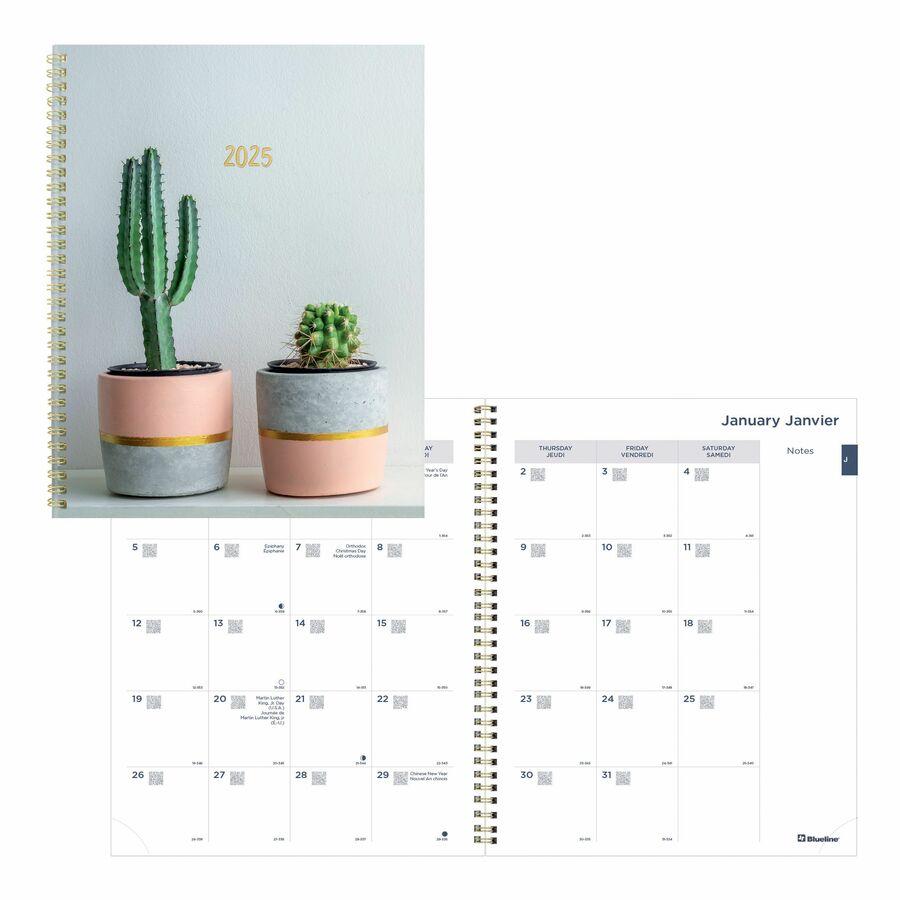 Blueline Succulent Plant 14-Month Monthly Planner, 11″x 8-1/2″ , Bilingual