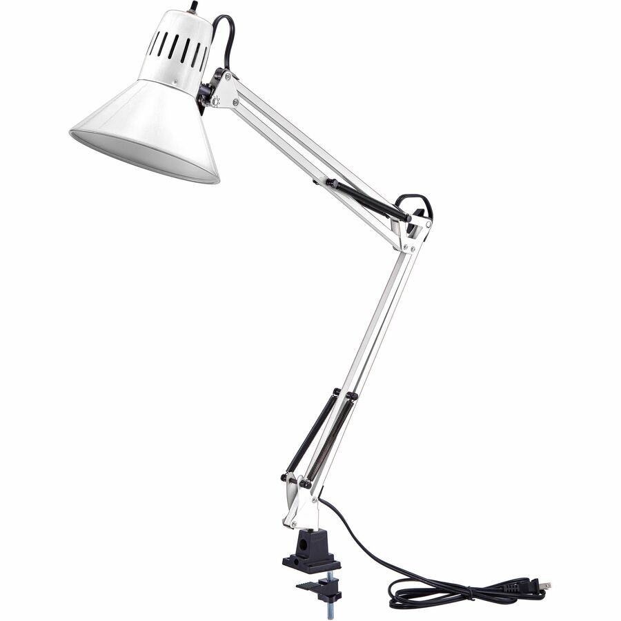 Marketing Information:Swing Arm Desk Lamp with Clamp attaches to a desktop using the clamp for versatile mounting. Fully adjustable swing arm provides focused, directional lighting. Long, multi-joint arm allows an extensive, 36″ reach that easily clears monitors and other objects for convenient lighting. Flicker-free light zone is clear of shadows, halos and troublesome glares. All-metal, durable construction provides long-lasting use. Minimalist, classic look effortlessly complements any office, dorm or classroom.