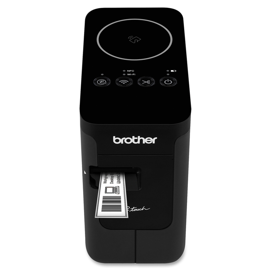 Marketing Information:Label maker offers flexible connectivity with built-in 802.11b/g/n to share with others on your wireless network, or USB interface to connect locally to a single user. Print customized labels up to 24mm wide – for indoor or outdoor use – with fonts and graphics from your PC or Mac. Print labels from your mobile device using Brother iPrint&Label app download. NFC connectivity lets you “touch to connect” to establish contact with most NFC-capable mobile devices. High print resolution supports crisp graphic, bar-code and logo printing. Do more in less time with super-fast print speeds and automatic half or full cutting support efficient multi-label printing. A vast assortment of templates can be downloaded from the Brother Cloud to help save time in creating labels. Power with the included AC adapter. The PT-P750W includes 0.94″ (24mm) x 13.1′ (4m) TZe starter tape and a USB cable.