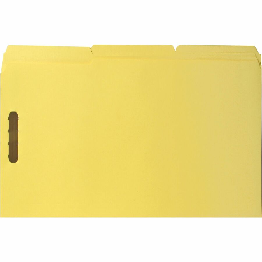 Fastener folders keep documents secure and in order. Bright colors allow quick file identification and retrieval. Two 2″ embedded fasteners in positions No. 1 and 3 provide two separate filing surfaces on each folder. File folder holds up to 3/4″ of legal-size documents and is made of sturdy, 11 point stock. Two-ply tabs are 1/3-cut in assorted positions and reinforced for extra durability.