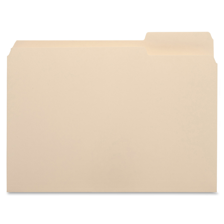 File folders feature 1/3-cut tabs that are 1/2″ high and undercut for label visibility. Tabs are also one-ply. Top corners are rounded. File folders are scored for 3/4″ expansion and made of 11 point stock.