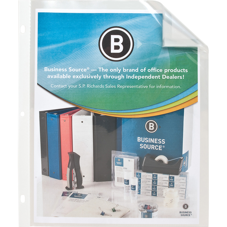 Durable, top-loading sheet protectors are bound together to let you easily keep inserts together and in order. Formulated polypropylene material will not stick or lift off print. Sheet protector includes die-cut corners and a reinforced strip at the binding edge. Three-hole punched edge fits in standard, letter-size, three-ring notebooks.