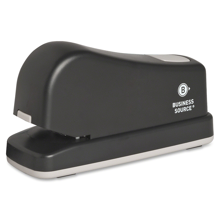 Electric Stapler makes stapling your documents easy. Simply slide them in the 3/8″ deep throat, and the stapler fastens up to 20 sheets of 20 lb. paper at a time with the press of a button. Load the full strip of 1/4″ staples in the front. Nonskid rubber feet keep stapler in place.