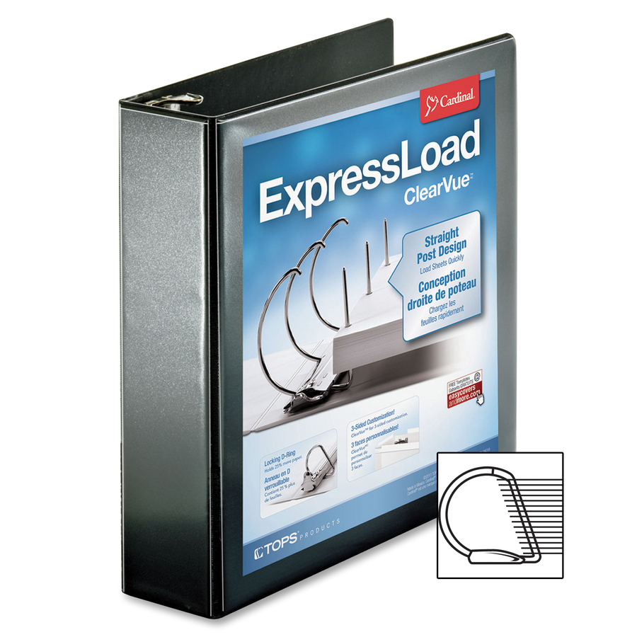 ExpressLoad ClearVue Locking D-ring Binder features a time-saving design that lets you load sheets quicker than ever. Straight post design makes it easy to load contents. Ideal for multiple presentations and reports. Ring design removes the hassle of maneuvering sheets over the curve while protecting them from damage during loading/unloading. Locking rings hold contents securely. Poly material will not stick to cover inserts or materials stored inside so it’s safe for all documents including photographs. Clear, nonglare overlay allows easy customization on all three sides. Binder also offers cold crack-resistance to 5 degrees Fahrenheit and horizontal interior pockets for quick and convenient storage.