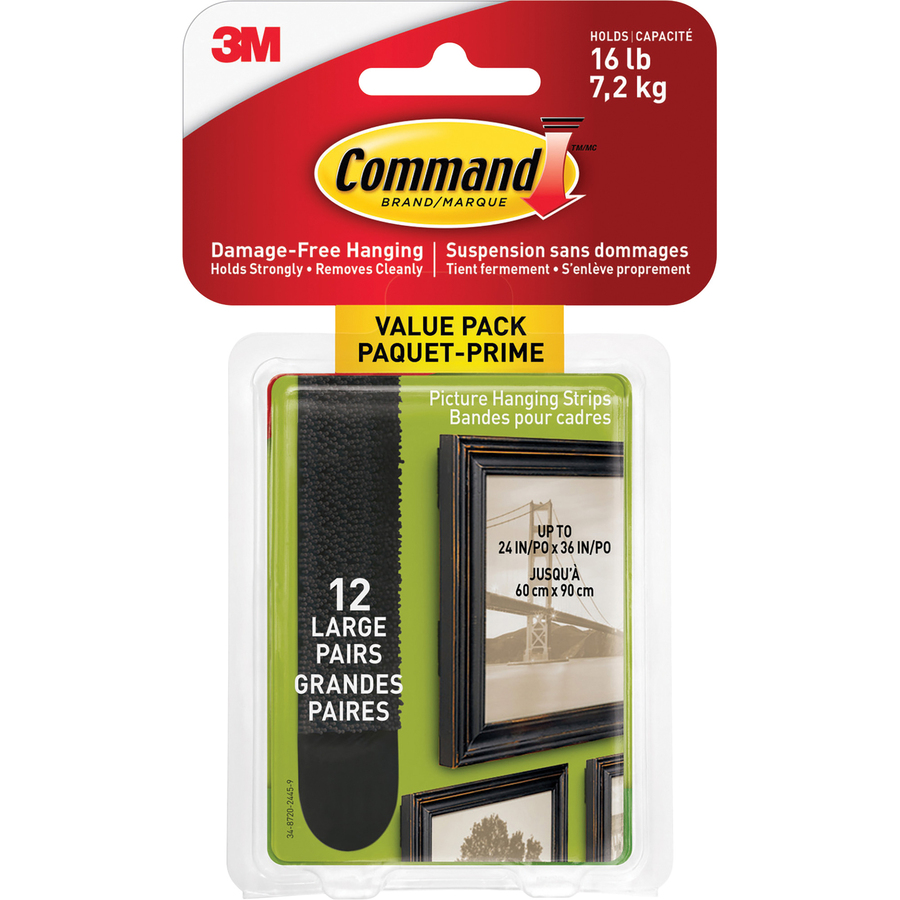 Easily put up and take down pictures, art, plaques and other small items with no nail holes. Picture-hanging strips with Command Adhesive hold firmly where placed. Fasteners can be separated and reattached with the rubber resin adhesive. When removed, they come off cleanly without surface damage. Each set holds up to 4 lb. Liner is made of paper. Tape has a double-coat construction.