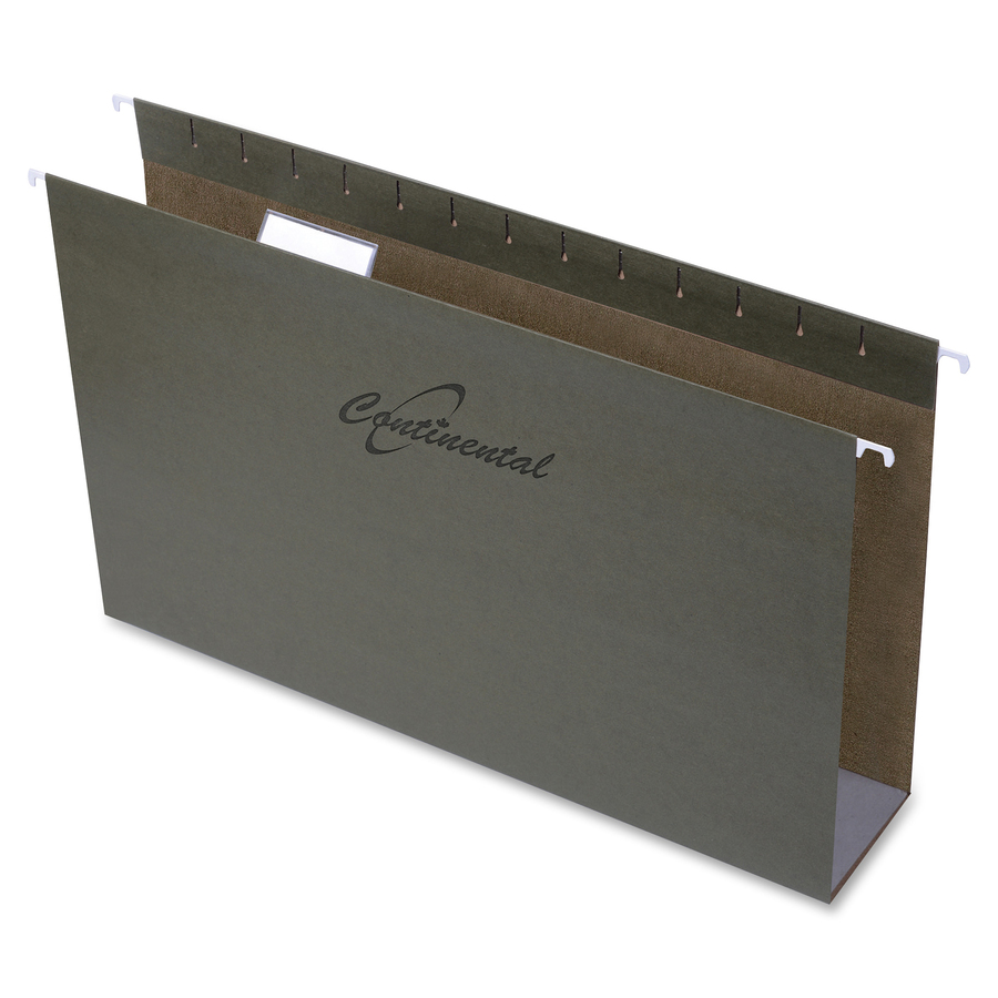 Legal-size, extra-capacity hanging folders feature reinforced steel rods for increased strength and durability. Coated rod tips glide smoothly across rails for easy access to your papers. Lighter color on the interior prevents you from accidently filing papers between folders. Versatile design allows you to position tabs throughout the length of the folder on either panel for quick reference to various sections.