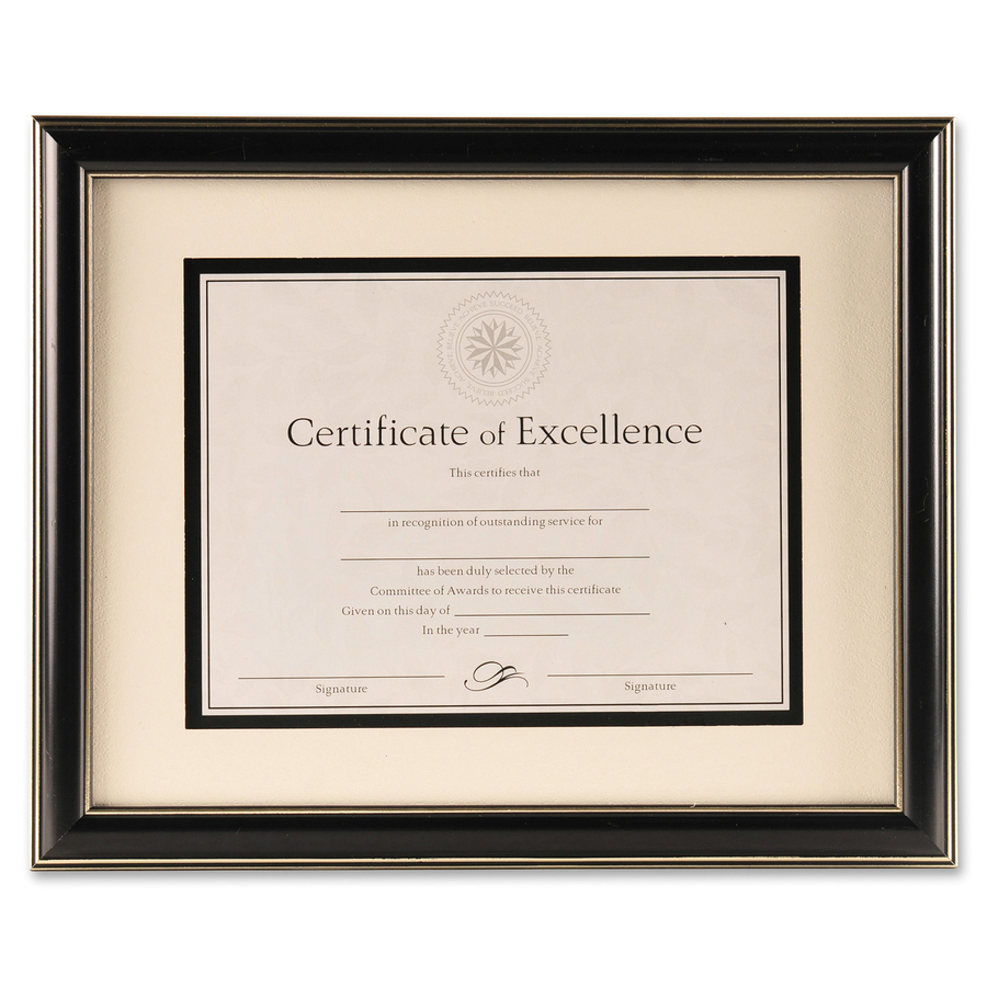 Highlight your most prized achievement with this stylish frame. Double-beveled mat with hangers allows you to display this frame either vertically or horizontally on the wall. Included certificate of excellence features an elegant design and is ready to use. Frame is perfect for displaying a certificate, award and more.