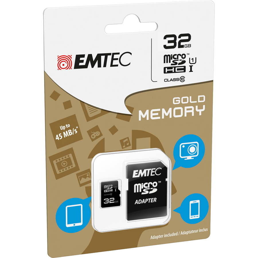 Use the microSD Class10 Gold UHS-I to extend the scope of your mobile devices. The microSD Card is the ideal way to increase the storage capacity of your smartphones and tablets so you can maximize your multimedia experiences, including gaming, applications, photos and videos. Versatile design with a 32GB capacity is compatible with all devices supporting microSDHC and microSDXC standards. SD card delivers fast write speeds up to 14MB per second and read speeds up to 45MB per second. Durable exterior protects your files for reliable, long-lasting use.