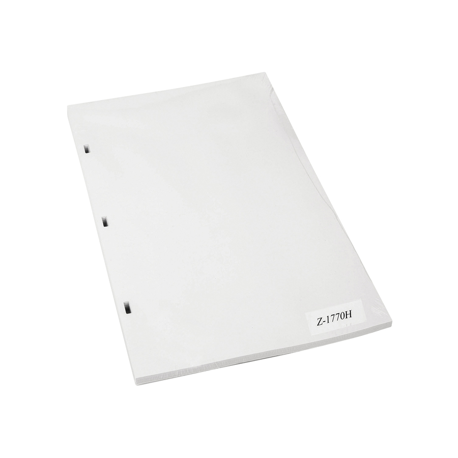 Blank, 8-1/2 x 14″ , 3 rectangular holes punched. Package of 100.