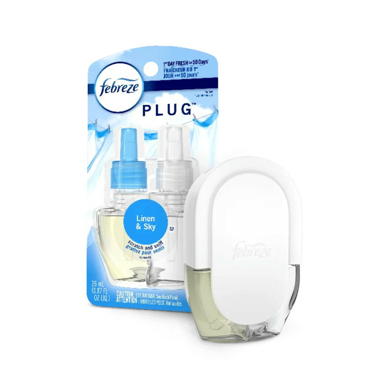 Bring the outdoors in with the fresh-off-the-clothesline scent of a Febreze PLUG with Fade Defy Technology in Linen & Sky. A scent so airy, your guests will think you live in a cloud. An odor-eliminating, noticeably fresh cloud.