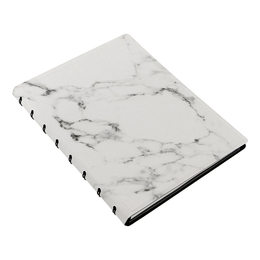 Marketing Information:Leather look cover with a unique flexibility. Twin-wire binding. Cover with integral reinforcement and can be folded open at a full 360. Pages can be easily added, removed or repositioned. 112 ruled sheets cream paper. Movable index, storage pocket and page-marker. 30% post-consumer recycled paper. A5 size : 8-1/4 x 5-3/4″. Marble.