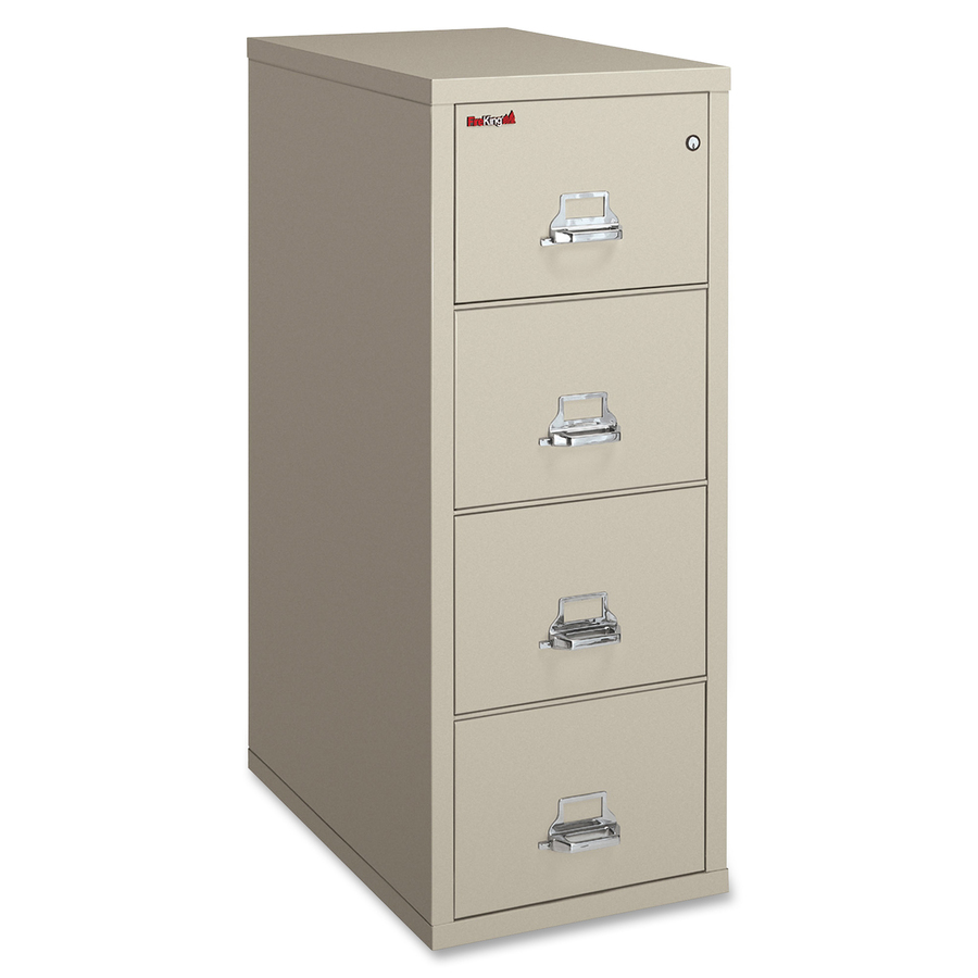 File cabinet provides a high level of protection from potential fires, severe impact damage and damage by water from sprinklers and fire hoses. Steel lattice reinforcement offers serious impact protection on all sides. Oven-dried, Gypsum insulation maintains its protection properties for a lifetime while eliminating corrosion. Electrostatic powder-coat finish is scratch-resistant to maintain its high-quality appearance for years to come. Four legal-size drawers are carefully built with high sides for convenient use with hanging folders, requiring no additional frames. An advanced lock bypass uses a two-position drawer catch to allow access to only certain drawers.