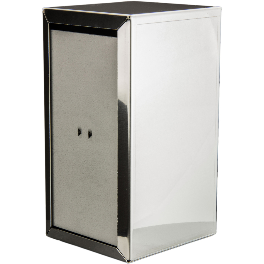 Vertical napkin dispenser with a 150-napkin capacity offers one-at-a-time dispensing to reduce napkin usage. Double-sided dispensing allows napkins to dispense from both sides for easy access. Compact size is perfect for areas with limited counter or table space. Durable steel construction holds up in high-traffic areas.