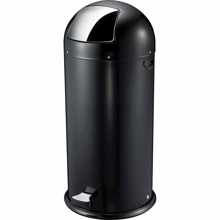 Pedal receptacle features steel construction, a galvanized liner, and nonporous, easy-clean finish. The hands-free foot pedal operates the self-closing door that controls odors and permits insertion of waste without touching disposal opening door. Ideal for all commercial settings and buildings. Top is rounded for a sleek look.