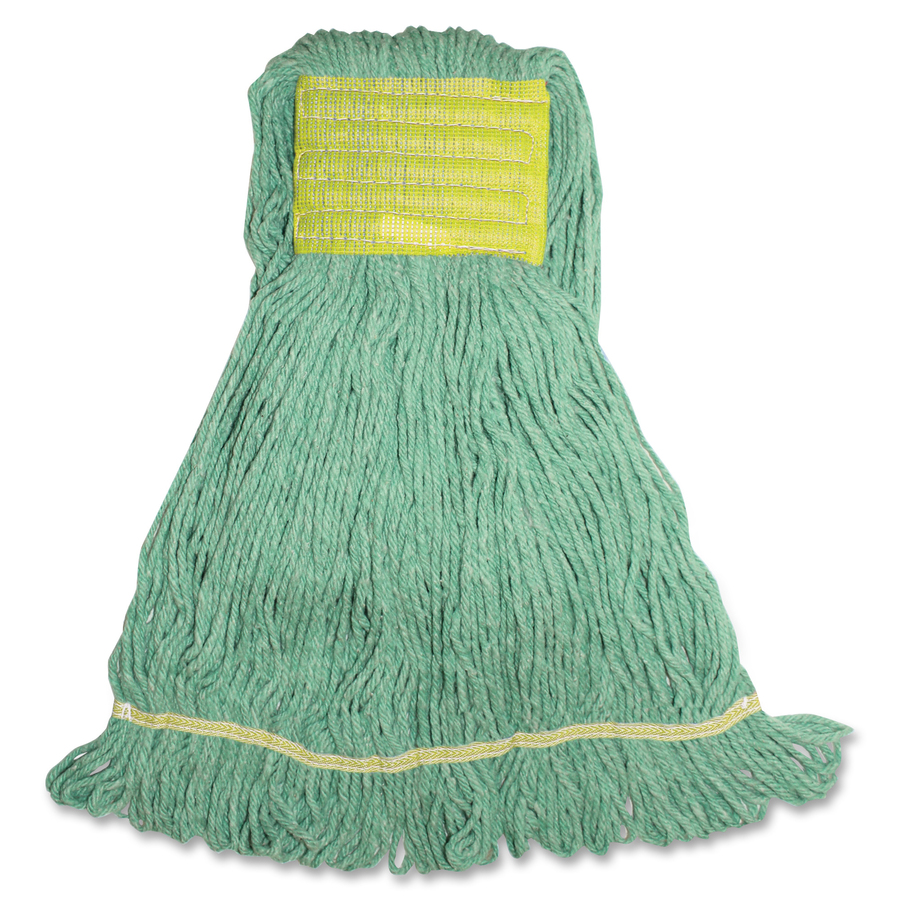 Small mophead with a wide headband is ideal for general cleaning and disinfecting. Synthetic blend fibers (rayon and cotton) absorb six to seven times their weight. Mop offers a limited break-in period so you can start mopping sooner. Looped ends provide greater durability and launderability. Wide headband allows added launderability and use with all handle styles. 5″ mesh headband with “S” zig-zag stitch pattern provides a more durable headband.