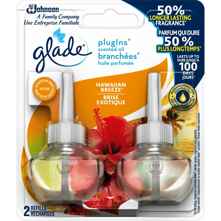 Scented oil refill continuously fills your room with a Hawaiian breeze scent that delivers the crisp scent of tropical fruits, pineapple and plumeria. Long-lasting scent provides a continuous fragrance for up to 30 days. See-through bottle lets you quickly see the current level to prevent unexpected depletion. Scented oil is perfect for offices, busy bathrooms, kitchens and more. Refill is designed for Glade PlugIns scented oil warmers (sold separately).