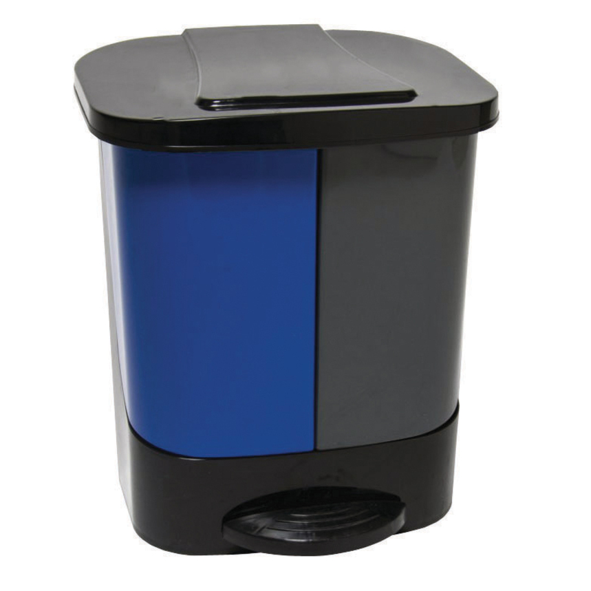 Step-on bin features a two-in-one design to hold two types of waste in a single bin. Lid helps keep odors inside and is more aesthetically pleasing to the eye. Each can has a lift-up handle for easy removal. Step-on bin is perfect for kitchens.