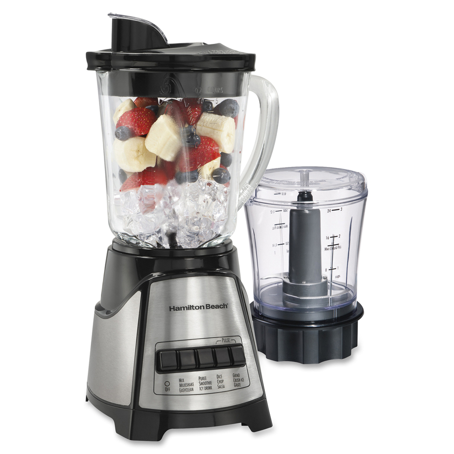 700-watt blender features a two-in-one design to provide both a blender and chopper in one, easy-to-use appliance. Shock-resistant glass jar is dishwasher-safe for quick, simple cleanings. Wave action system offers smooth results without needing to stir. No-mess spout helps you keep your work space tidy when pouring liquids. Cord storage retracts the cord into the base for convenient storage.