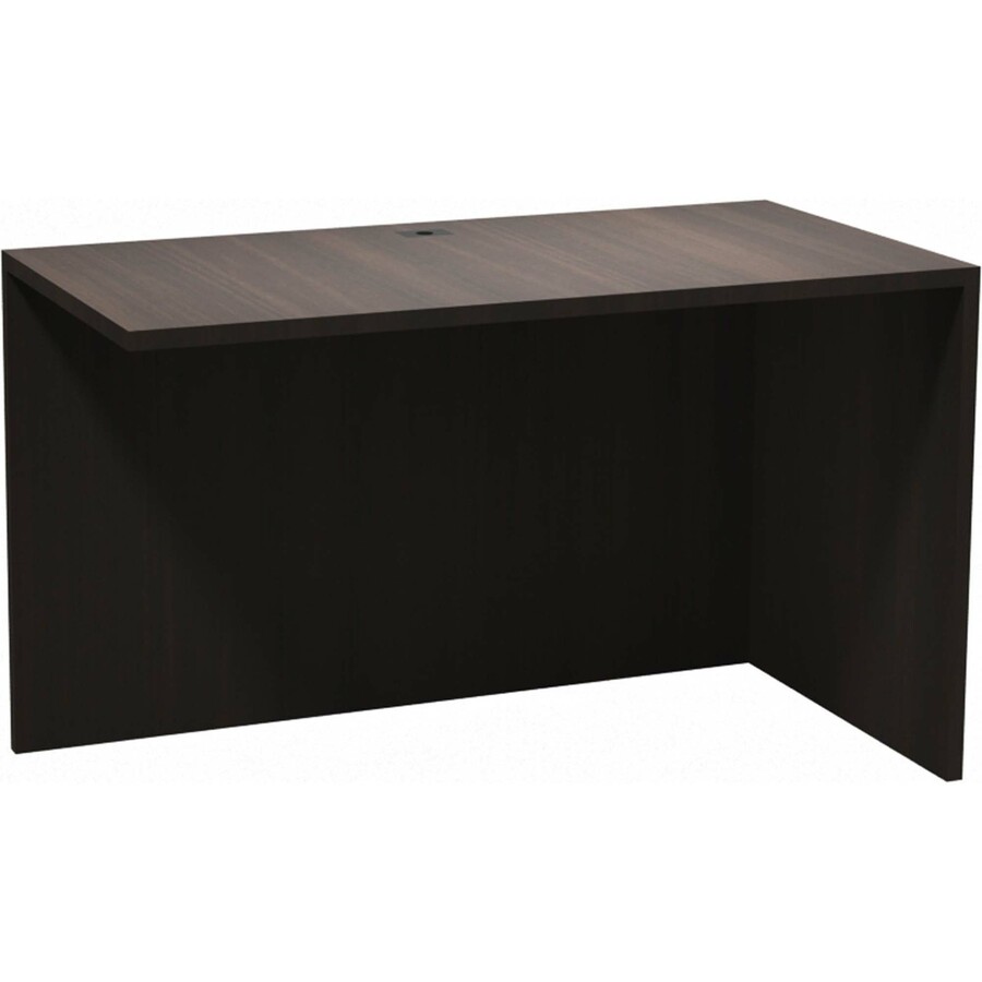 This nonhanded return shell is part of the Heartwood Innovations Laminate Series that combines intelligent design and function with lasting durability. The series offers high-quality construction with an abundance of components so you can make the perfect choice for your office or work space. Evening Zen Laminate is water-resistant, scratch-resistant, dent-resistant and burn-resistant and requires little maintenance to keep it looking great. Durable, premium, thermally fused, woodgrain laminate tops 1″ thick, 45 lb. industrial particleboard core. Tough, 3mm thick, PVC color-matched edging provides excellent wear-resistance. A Titanium highlight strip is inserted below the top for a stylish accent. The 47-1/4″ wide return shell with full modesty panel can also be used as a bridge connector. Leveling glides keep the return even on uneven surfaces.