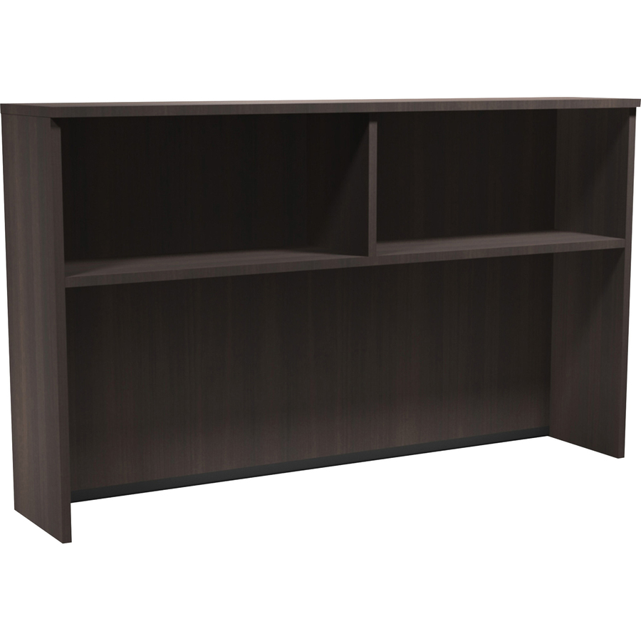 Marketing Information:Open hutch is part of the Heartwood Innovations Laminate Series that combines intelligent design and function with lasting durability. Evening Zen Laminate is water-resistant, scratch-resistant, dent-resistant and burn-resistant and requires little maintenance to keep it looking great. Durable, premium, thermally fused, woodgrain laminate tops thick, 45 lb. industrial particleboard core. Tough, 3mm thick, PVC color-matched edging provides excellent wear-resistance. Pair hutch with Heartwood Innovations 71″ wide desk configurations and corner modules. Two open shelves on the hutch offer a versatile storage area that saves valuable desktop space. The 42-1/2″ high hutch is pre-drilled for optional hinged laminate or aluminum glass doors (sold separately).