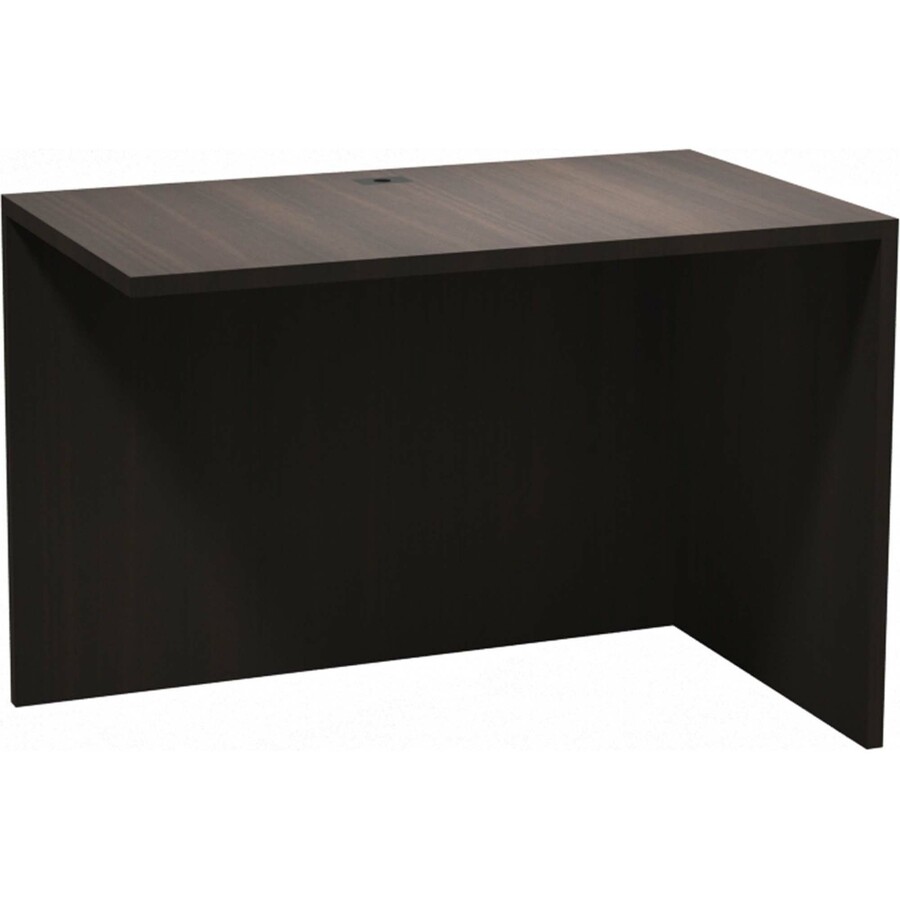 This nonhanded return shell is part of the Heartwood Innovations Laminate Series that combines intelligent design and function with lasting durability. The series offers high-quality construction with an abundance of components so you can make the perfect choice for your office or work space. Evening Zen Laminate is water-resistant, scratch-resistant, dent-resistant and burn-resistant and requires little maintenance to keep it looking great. Durable, premium, thermally fused, woodgrain laminate tops 1″ thick, 45 lb. industrial particleboard core. Tough, 3mm thick, PVC color-matched edging provides excellent wear-resistance. A Titanium highlight strip is inserted below the top for a stylish accent. The 41-1/2″ wide return shell with full modesty panel can also be used as a bridge connector. Leveling glides keep the return even on uneven surfaces.