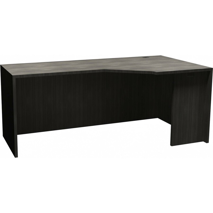Left-Extended Corner Module is part of the Heartwood Innovations Laminate Series that combines intelligent design and function with lasting durability. Grey Dusk Laminate is water-resistant, scratch-resistant, dent-resistant and burn-resistant and requires little maintenance to keep it looking great. Durable, premium, thermally fused, woodgrain laminate tops 1″ thick, 45 lb. industrial particleboard core. Tough, 3mm thick, PVC color-matched edging provides excellent wear-resistance. A black shadow strip is inserted below the top for a stylish accent. For more working space compared to other corner desks, the left side has an extended worksurface. The right side has a greater depth at 35-1/2″. Left-side depth is 23-3/4″. The 71″ wide corner module includes a grommet for easy cord management, full flush modesty panel, and leveling glides so the desk can remain even on uneven surfaces. Pair with a Heartwood Innovations pedestal and hutch to add convenient storage options.