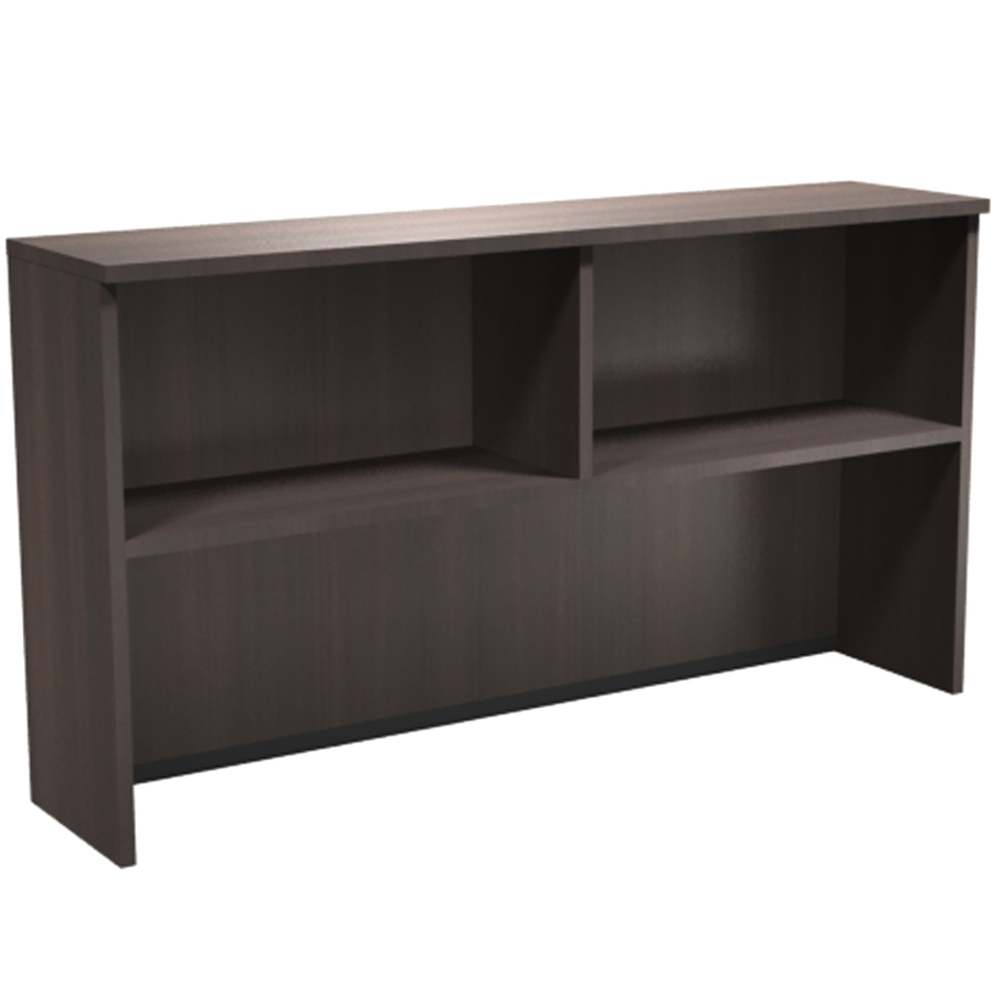 Open hutch is part of the Heartwood Innovations Laminate Series that combines intelligent design and function with lasting durability. Evening Zen Laminate is water-resistant, scratch-resistant, dent-resistant and burn-resistant and requires little maintenance to keep it looking great. Durable, premium, thermally fused, woodgrain laminate tops thick, 45 lb. industrial particleboard core. Tough, 3mm thick, PVC color-matched edging provides excellent wear-resistance. Pair hutch with Heartwood Innovations 65″ wide desk configurations and corner modules. Two open shelves on the hutch offer a versatile storage area that saves valuable desktop space. Hutch is pre-drilled for optional hinged laminate or aluminum glass doors (sold separately).