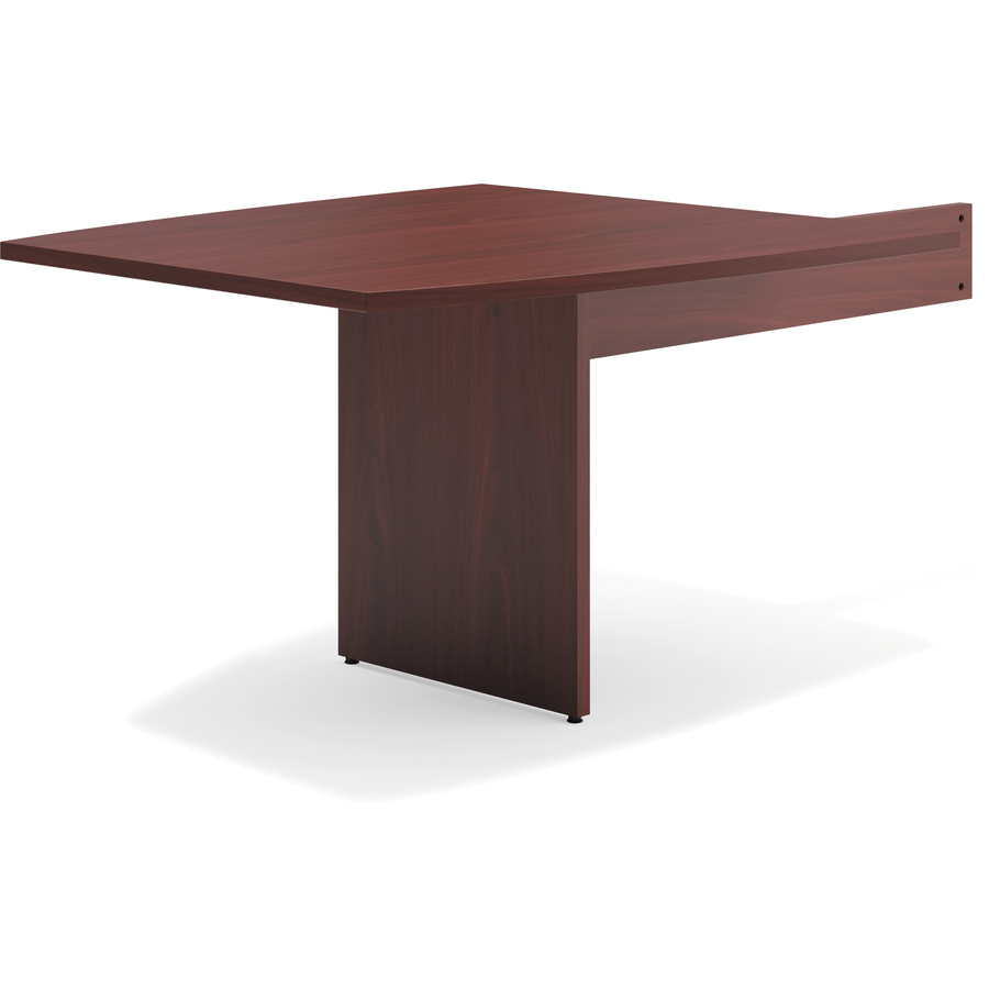 Table end piece is part of HON BL Modular Tables that allow you to add sections as needs change. This flexible, boat-shaped design is both practical and stylish for maximum comfort, support and functionality. Heavy-duty, 1-1/8″ laminate top and slab bases provide a solid, sturdy foundation. Easy-to-clean, Mahogany laminate is scratch-resistant, spill-resistant and stain-resistant. Steel understructure offers additional tabletop support. Slab base is reinforced with double stretcher rails and steel tubular support. Adjustable leveling guides assure proper installation and maintenance even on uneven floors.