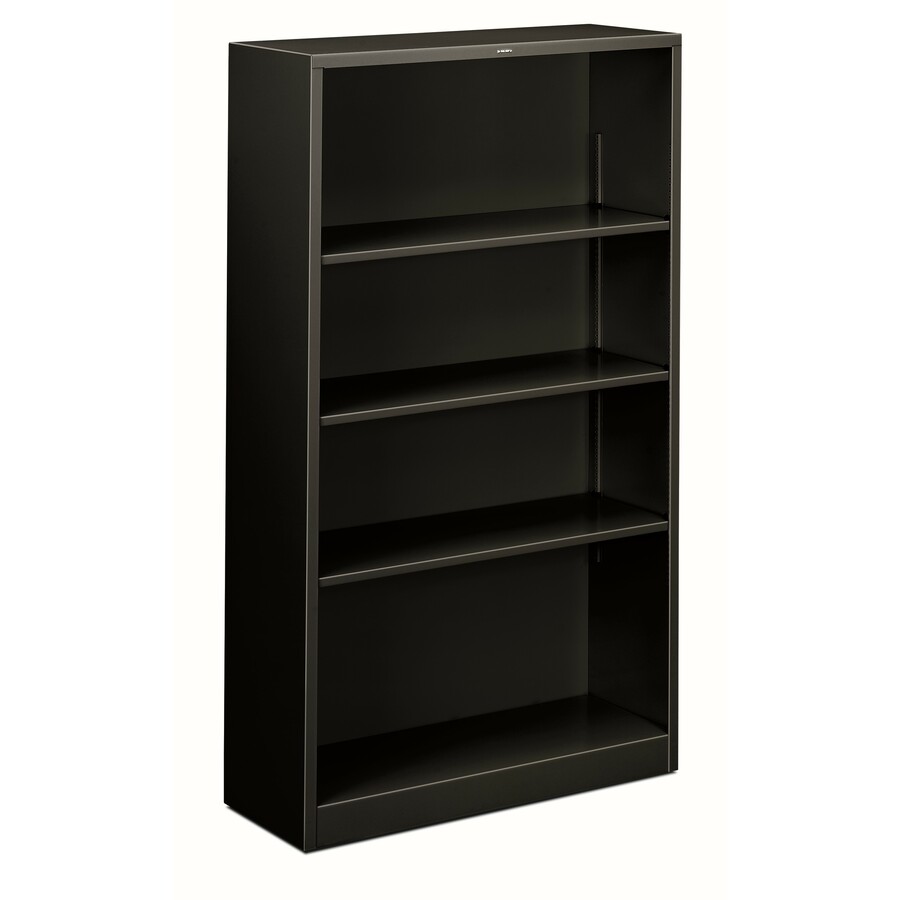 Eminently practical and useful steel bookcase offers long life with its heavy-duty construction. Heavy-gauge steel frame has a baked enamel finish over rust-inhibiting, phosphate pretreatment. Four shelves with generous depth hold plenty and are ideal for smaller spaces. Adjust the movable shelves in 1/2″ increments to accommodate any size item. Black, four-shelf bookcase has 12-1/8″ deep shelves, including the fixed bottom shelf. Each shelf holds up to 82 lb.