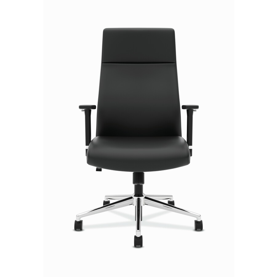 Marketing Information:High-back executive chair features a tuxedo design on the back that creates a contemporary aesthetic. Polished chrome base and arm accents reflect a professional appearance with stylish, comfortable SofThread Leather upholstery. Layers of multi-density foam in seat and back provide long-lasting comfort. The intuitive design allows you to easily adjust your comfort. Simple, understandable controls include seat and arm height to fit your body and 2-to-1 synchro-tilt to provide comfort. Other functions include pneumatic seat-height adjustment from 17″ to 21″ , 360-degree swivel, tilt tension and tilt lock. Chair capacity is 250 lb.