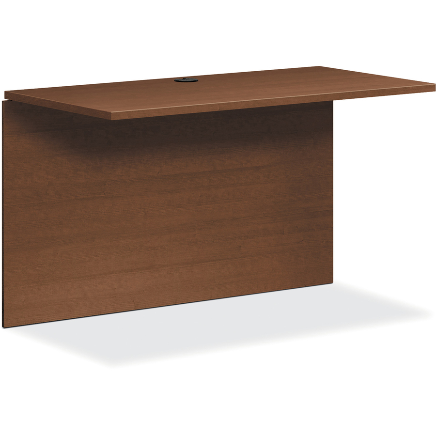 Marketing Information:Bridge is part of the HON Foundation, a versatile collection of laminate desk and storage solutions that can be combined in a variety of ways to fit any work style or space. Combine with a Foundation desk shell, credenza shell, return shell, pedestals (all sold separately) for an L-station or U-station. Surfaces feature attractive, scratch-resistant and stain-resistant, Shake Cherry thermal-fused laminate for an unbeatable combination of stunning beauty and rugged durability. The durable top and end panels are 1″ thick. Convenient cord management includes one 3″ black cord grommet in the top and one cord pass-through grommet in the top center of modesty panel.