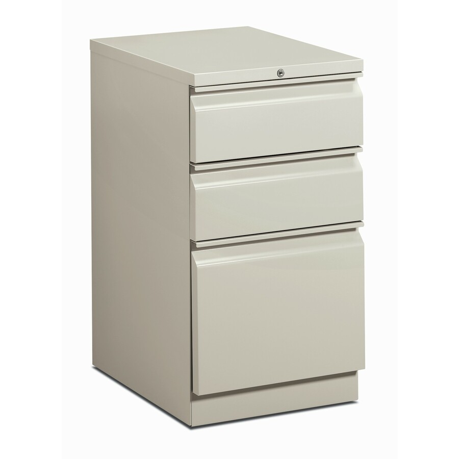 Mobile pedestal delivers commercial office quality. It fits under all HON worksurfaces and desk shells as well as 29″ high or higher worksurfaces. Design includes two box drawers for office supplies, one file drawer and a core-removable lock for secure, ample storage. High sides on file drawers allow letter-size filing front-to-back. File drawer opens smoothly with ball-bearing suspension and 90 percent extension. Box drawers open nylon roller suspension with 75 percent. Steel frame construction is built for everyday use. Integrated handles create a clean appearance. Steel ball-bearing drawer suspension operates easily and quietly.