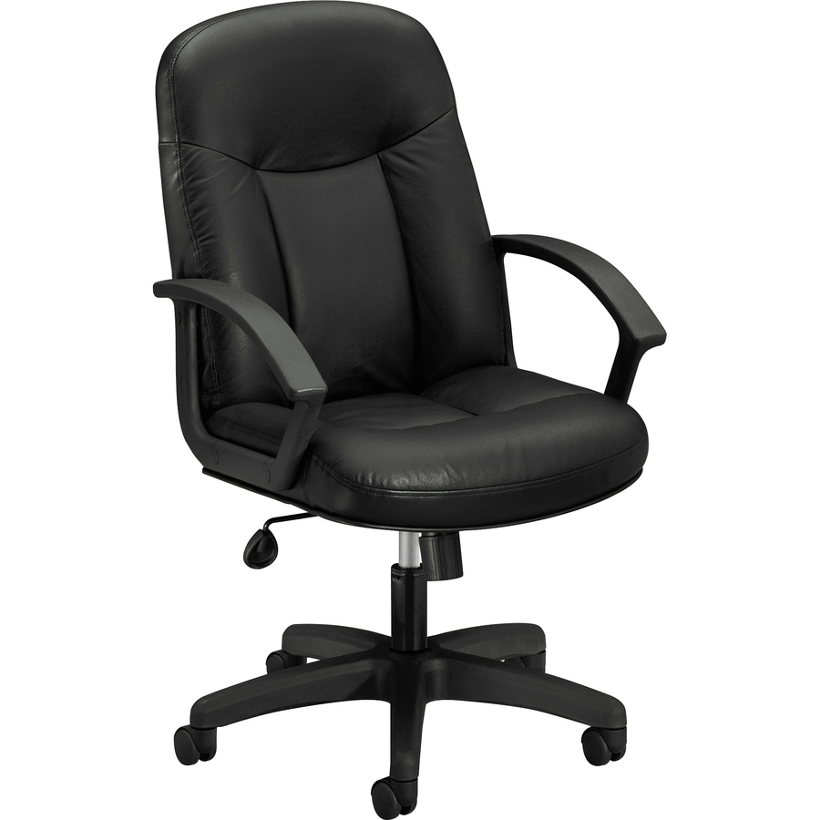 Marketing Information:Executive high-back chair is made with high-quality materials and customizable controls for a smart solution for any application. Design features fixed loop arms and plush, easy-care SofThread leather for a neat appearance. Sturdy textured frame ensures strength and stability. Compact design makes the most of smaller work spaces. Functions include pneumatic seat-height adjustment from 16-3/4″ to 21″ , 360-degree swivel, tilt, tilt tension and tilt lock. Weight capacity is 250 lb. Seat measures 20-1/2″ wide x 17″ deep. Back size is 20-1/2″ wide x 26-1/2″ high.