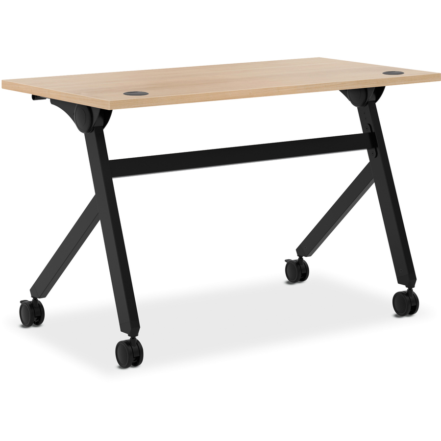 Marketing Information:HON multi-purpose tables offer unsurpassed flexibility and uncompromising quality at an unexpected price. This 48″W x 24″D flip base table is outstanding for collaborative areas. The worksurface tilts from work mode to nesting position on sturdy hinges that rotate smoothly. The tilt-lock mechanism is released by a convenient full-width handle. The durable steel chassis features two sturdy cross beams to keep the worksurface aligned and sturdy. Each table ships with two locking and two non-locking casters for mobility. Laminate color is Wheat and paint color is Black.