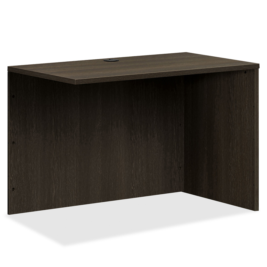 Return shell is part of the HON BL Laminate Furniture Collection that delivers a professional look on a budget. Tough, affordable and practical, this collection simply makes sense, helping you get the job done without a lot of bother. Modular components support popular, U-shaped and L-shaped layouts. Durable, 1″ thick top is covered with abrasion-resistant, stain-resistant, thermal-fused, Espresso laminate. Modesty panel is full-height for maximum privacy. Return shell also features one black grommet in the top surface and a one-cord pass-through grommet in the center of the modesty panel for easy cord management. Adjustable floor-leveling glides provide 1/2″ of adjustment.