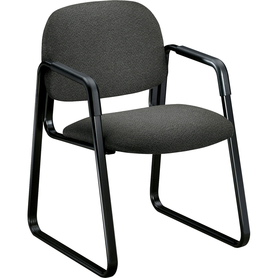 Solutions Seating from HON is a long-standing favorite with businesses everywhere. This sled-based guest chair features a floating backrest to give your spine maximum support. The floating back is also easy to keep clean with no crevices to catch crumbs. Seat and back are upholstered in gray Olefin fabric that is stain-resistant and abrasion-resistant. Inner seat shell is molded from a wood composite with high recycled content. Arms offer additional comfort. Heavy-duty, black steel tube stands up to years of activity. Guest chair is ideal for supervisory, administrative, technical and lobby/guest functions. It comes fully assembled and ready to use.