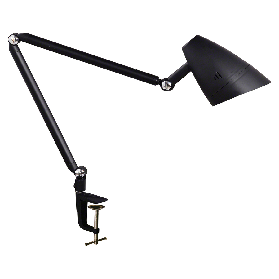 Shine light where you need it with a professional, dimmable, double-arm, LED table lamp. Two adjustable and flexible arms allow you to target light on the task at hand. The 24″ high (60.96cm) lamp delivers 600 lumens and is dimmable in three positions. 50,000-hour rating assures long-lasting use. Heavy table base holds the lamp securely on a desk or table while an included table clamp provides the option of fixed mounting when needed.