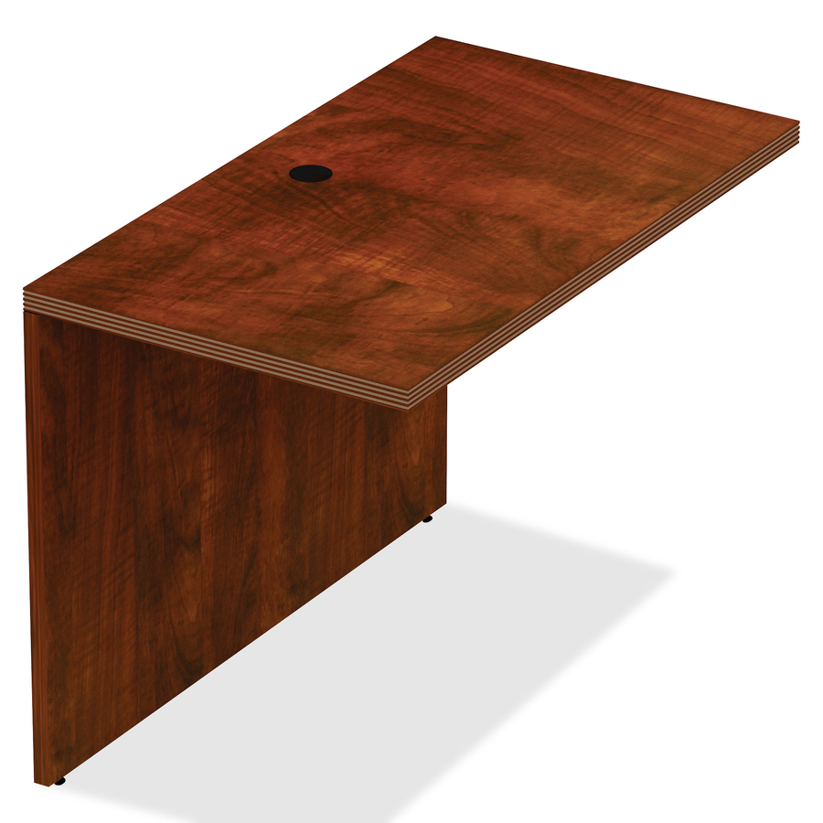 Bridge is part of the Lorell Chateau Series that offers contemporary laminate office furniture with a durable design and multiple configuration options. Top features reeded edge detail for a distinct look. Design also includes a full modesty panel for privacy and high-quality, Cherry laminate surface for durability. One grommet hole in the top allows easy cord routing. Connect this bridge to Chateau desks and credenzas to create the office that works best for you. Add Lorell Essentials Series pedestals (sold separately) to expand your storage options.
