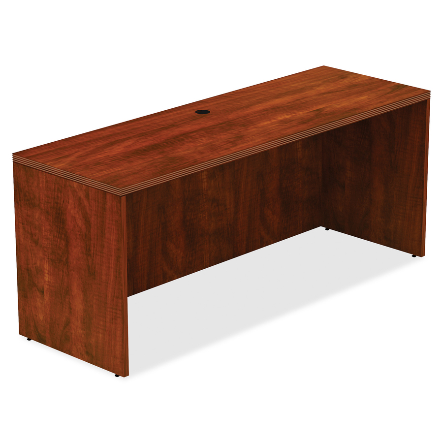 Credenza is part of the Lorell Chateau Series that offers contemporary laminate office furniture with a durable design and multiple configuration options. The 1-1/2″ thick top features reeded edge detail for a distinct look. Design also includes a full modesty panel for privacy and high-quality, Cherry laminate surface for durability. One grommet hole in the top allows easy cord routing. Add Lorell Essentials Series pedestals (sold separately) to expand your storage options.